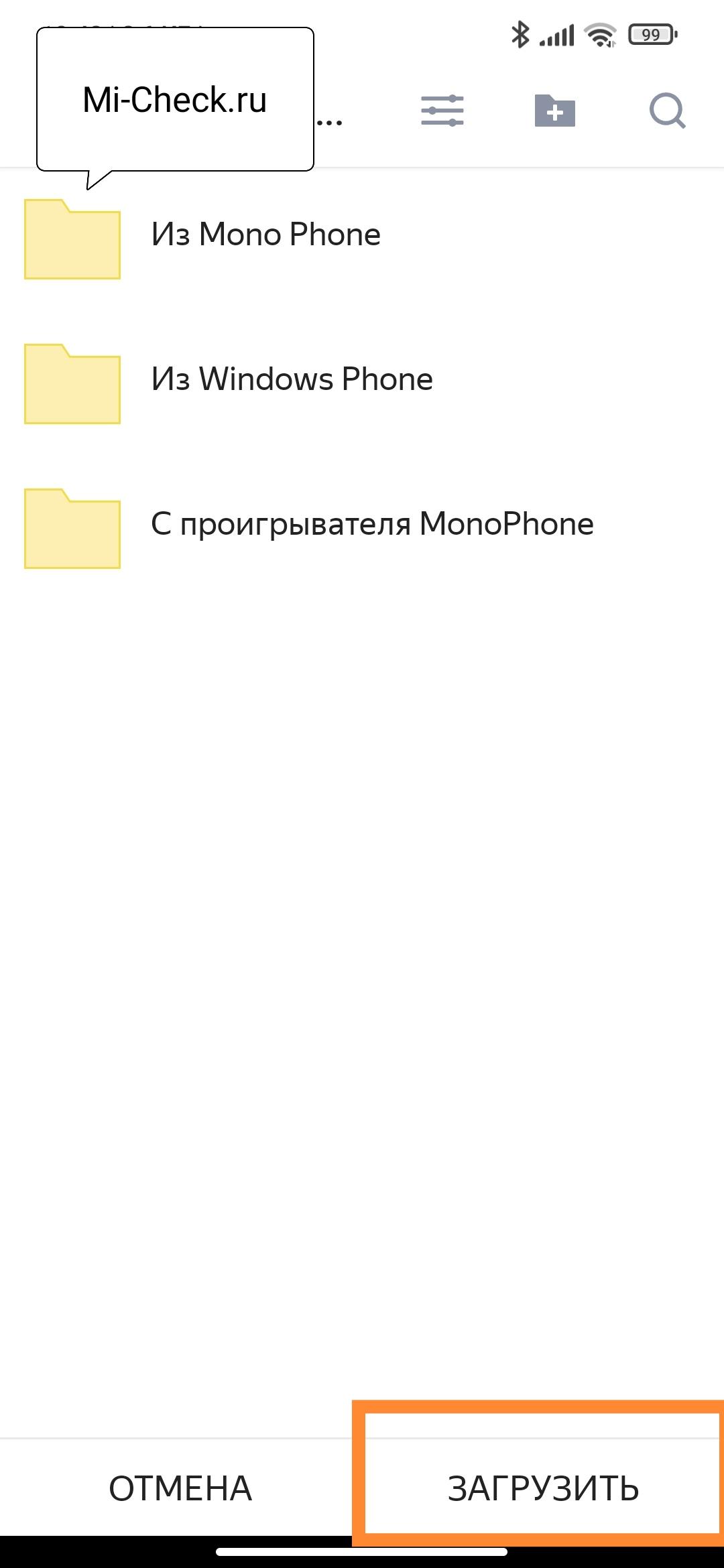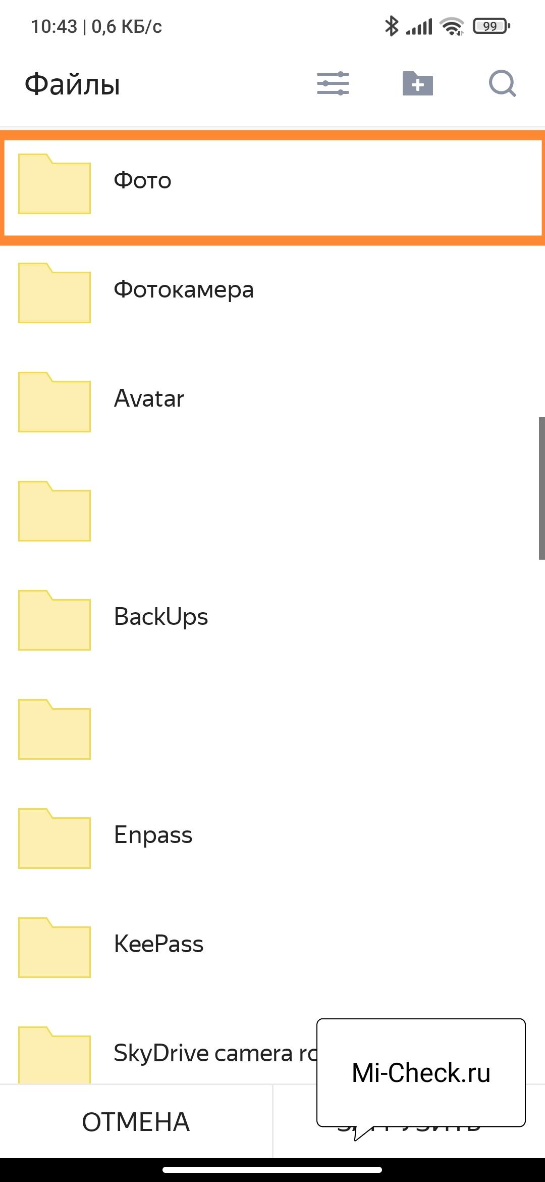 Выберите целевую папку в облаке, или создайте её, чтобы временно поместить туда перемещаемые фотографии. Загрузите фото в облако.