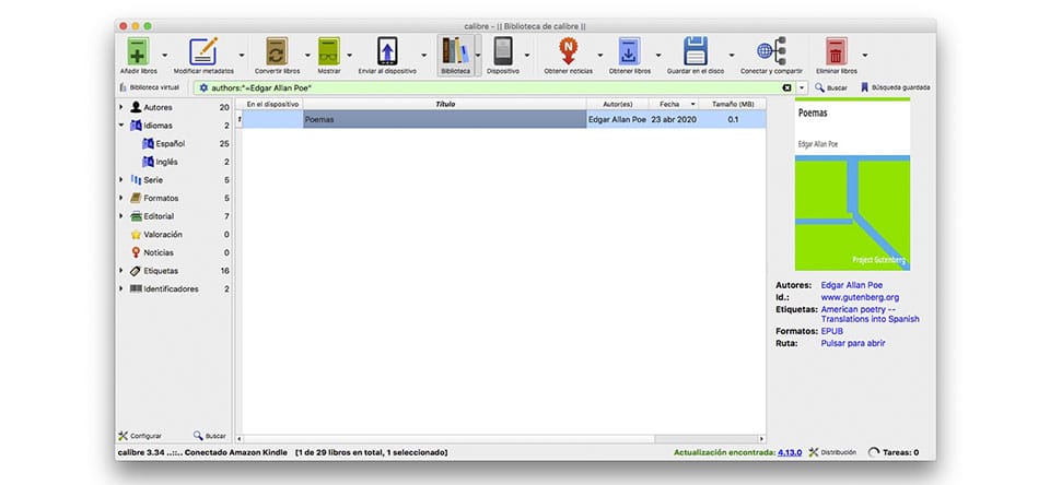При преобразовании документов в формат, совместимый с Kindle, калибр возможно, самая популярная и широко используемая программа. Причина? Что им довольно легко пользоваться (хотя у него тысяча опций, не пугайтесь) и, прежде всего, это 100%