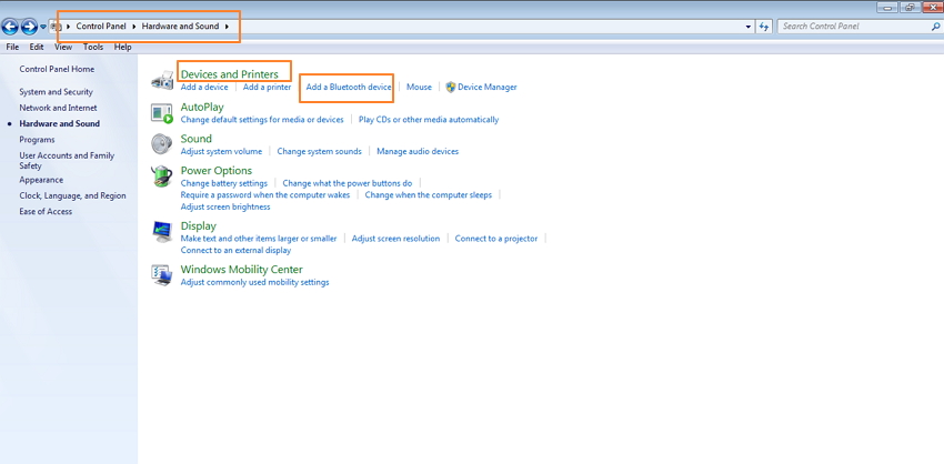 Шаг 2. Включите опцию Bluetooth на вашем ПК. Затем откройте Панель управления > Оборудование и звук > Устройства и принтеры > Добавить устройство Bluetooth. Затем следуйте инструкциям по подключению и сопряжению телефона Android.