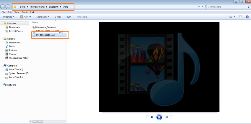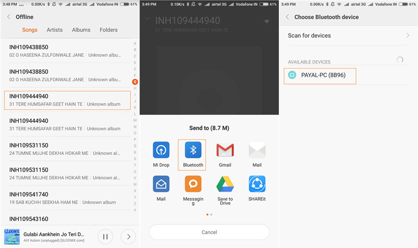 Шаг 3. На телефоне Android выберите музыкальный файл и передайте файл на подключенный компьютер с помощью Bluetooth.