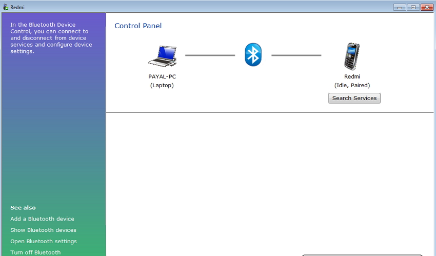 Включите Bluetooth на своем ноутбуке. Затем откройте «Панель управления», выберите «Оборудование и звук» и нажмите «Устройства и принтеры» > Опция «Добавить устройство Bluetooth». Затем вам необходимо подключить телефон Android к ноутбуку и выполнить сопряжение, следуя инструкциям.
