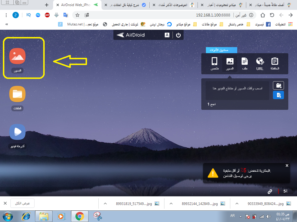 - Выберите любой из файлов перед вами, например изображения, файл изображения, и нажмите на него, чтобы ввести все файлы изображений на вашем телефоне через компьютер, как вы заметили на следующем изображении.
