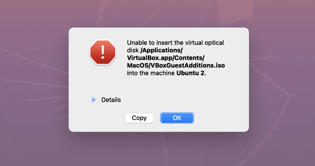Перед вами появится сообщение с предложением установки. Установите дополнение по подсказкам в системе. При установке дополнений часто возникают ошибки. Например, при нажатии на «Insert Guest Additions CD image» появляется ошибка: Если у вас появилось что-то подобное, ниже мы предложим небольшую инструкцию по устранению проблемы. Если установка дополнений прошла успешно, переходите к следующему шагу.