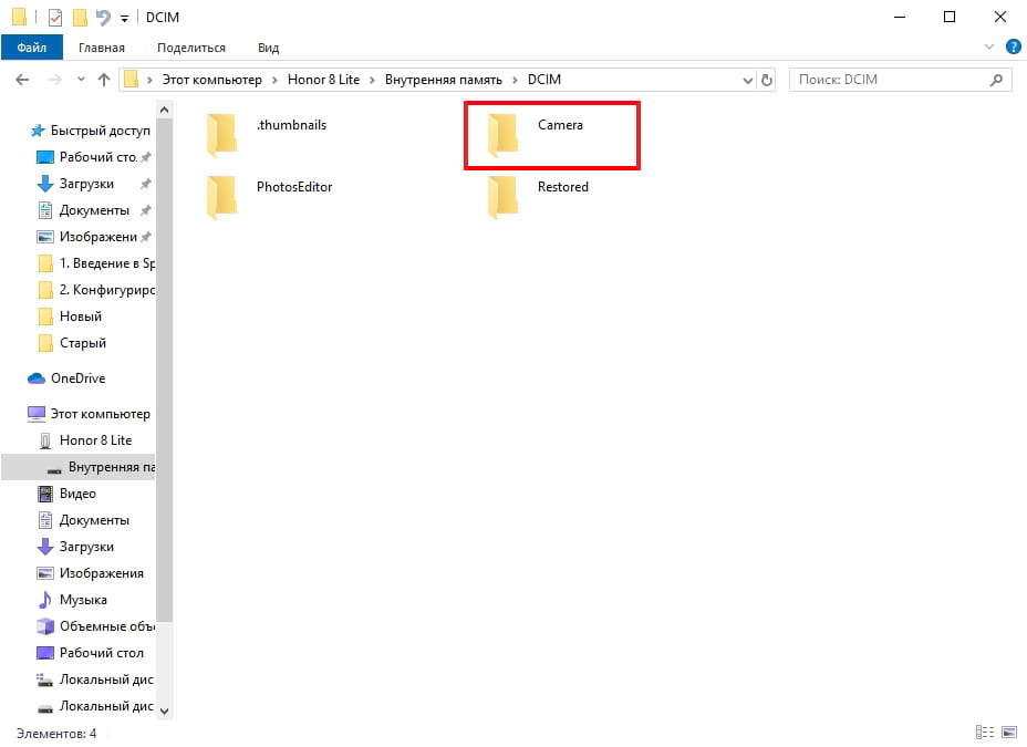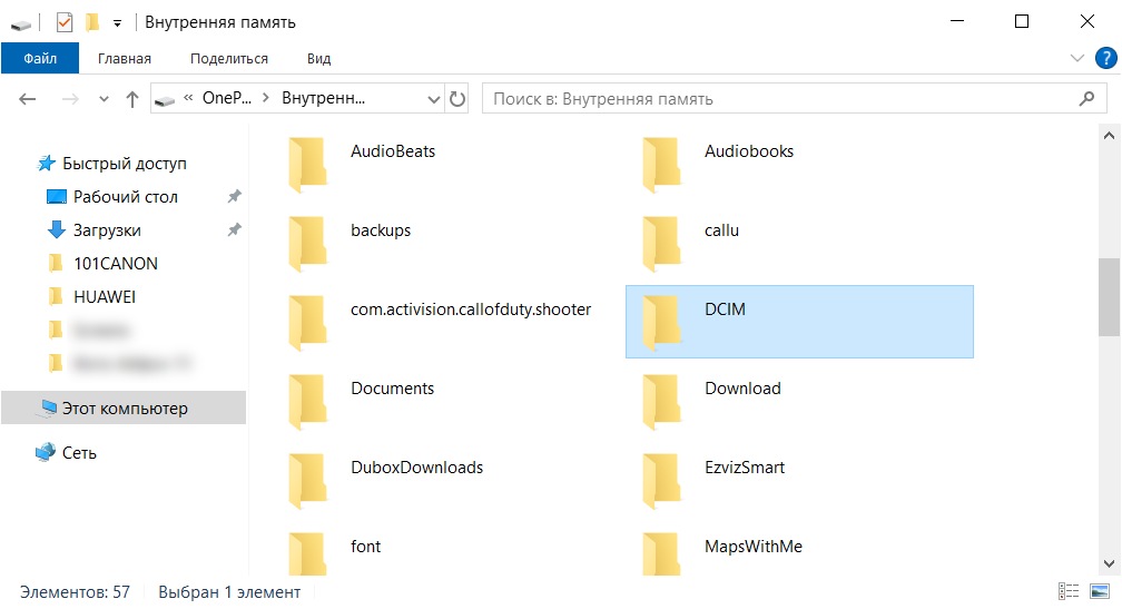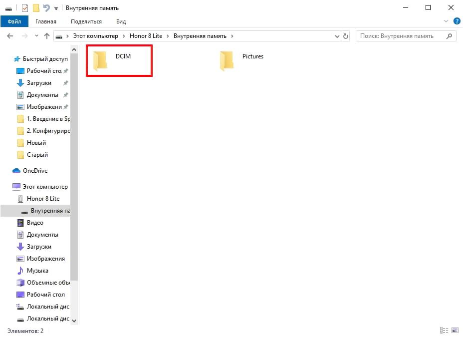 4. В нужном диске потребуется открыть папку «DCIM» (там хранятся фотографии из галереи) либо папку «Photos» («Pictures») – в них будут храниться другие изображения.
