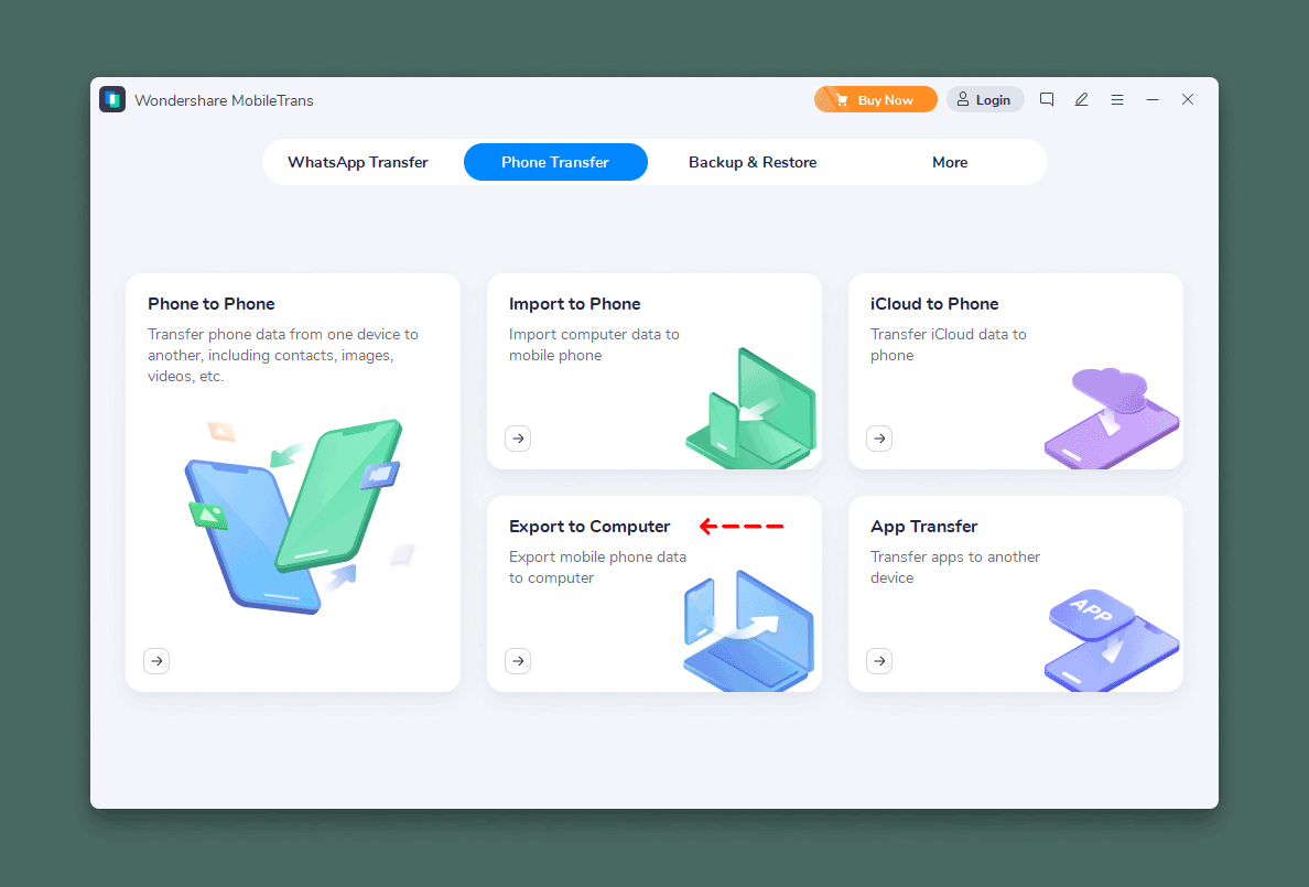 3. Выберите вкладку «Phone transfer» в главном меню сверху.