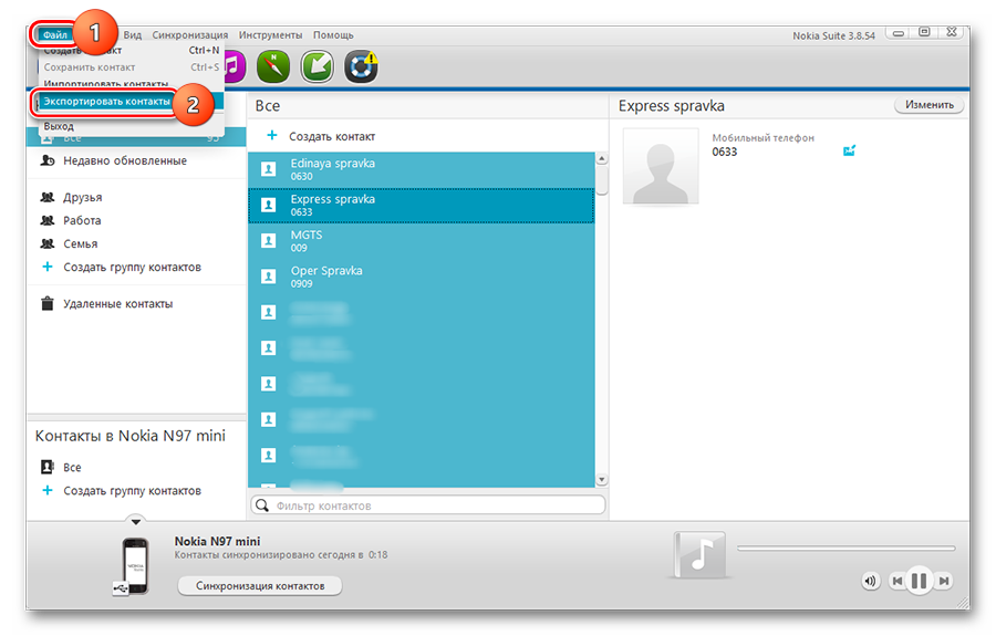 Выберите контакты, что следует перенести, после чего нажмите на кнопку «Экспорт».