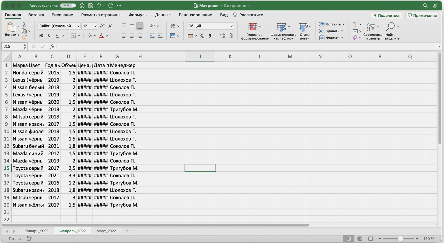 Допустим, специальный сервис автосалона выгрузил отчёт по продажам за три месяца первого квартала в формате таблиц Excel. Эти таблицы содержат всю необходимую информацию, но при этом никак не отформатированы: колонки слиплись друг с другом и не видны полностью, шапка таблицы не выделена и сливается с другими строками, часть данных не отображается.