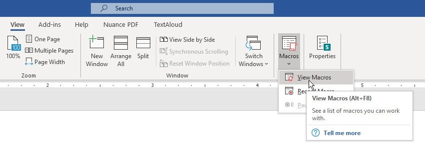 2. Click on the View tab, select the Macros icon, and select View Macros (Figure A).