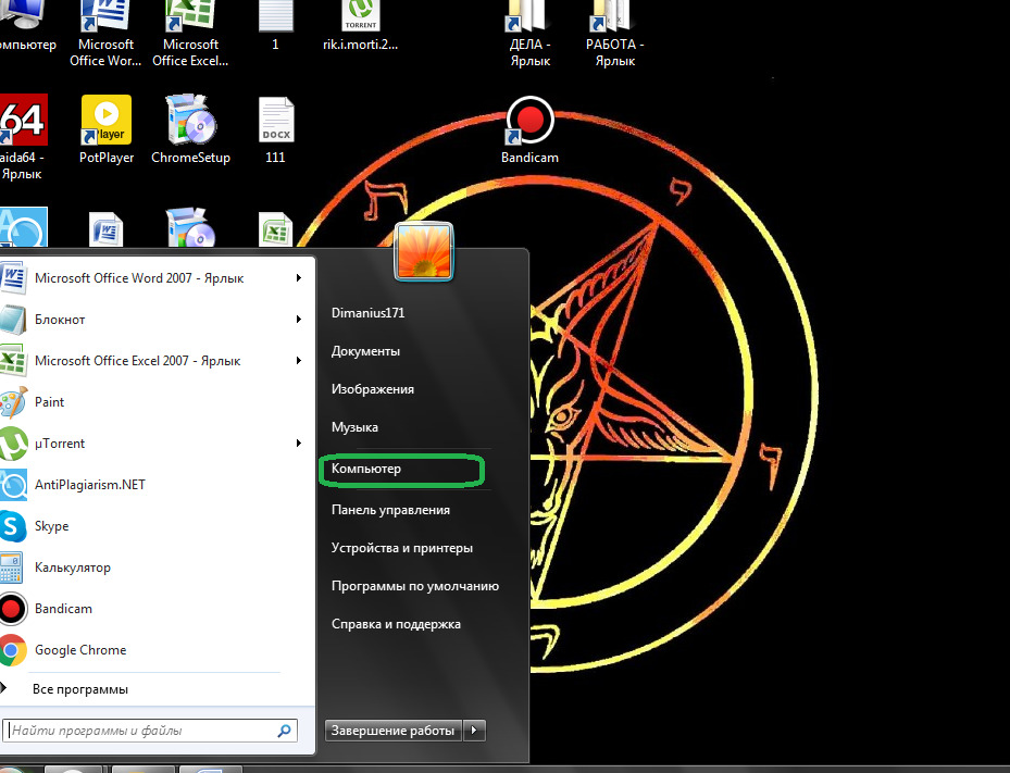 - Перейти в папку Мой компьютер через одноименный ярлык на рабочем столе или через меню Пуск.