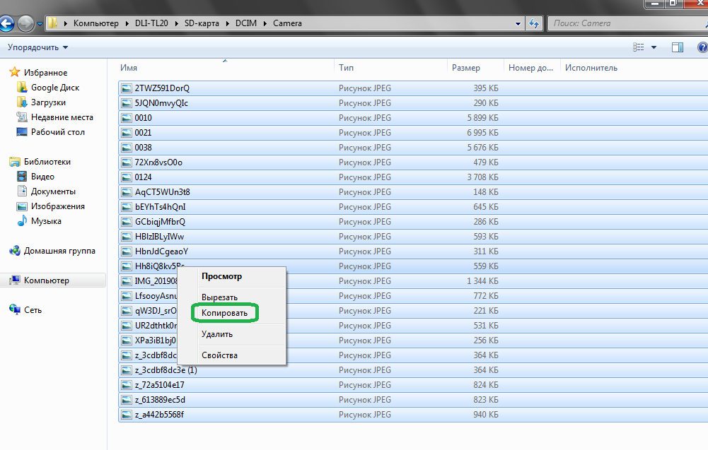 Теперь карту памяти можно подключить к компьютеру через подходящее устройство чтения, а затем скопировать файлы на диск.