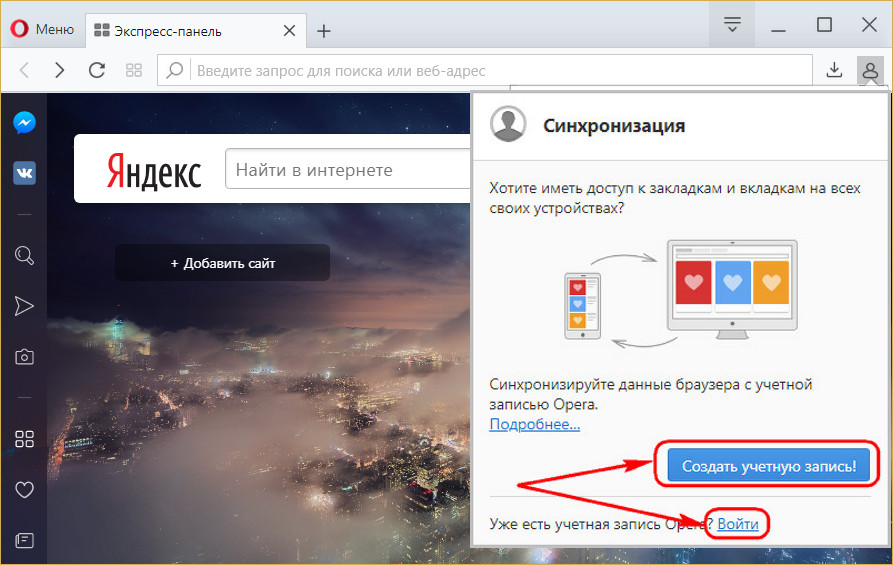 На новом ПК установите последнюю версию браузера, пользуясь инструкцией из нашей статьи. Когда он запустится, кликните ЛКМ по иконке в виде серого силуэта рядом со строкой ввода адреса (сверху окна). А потом нажмите «Включить…».![]()