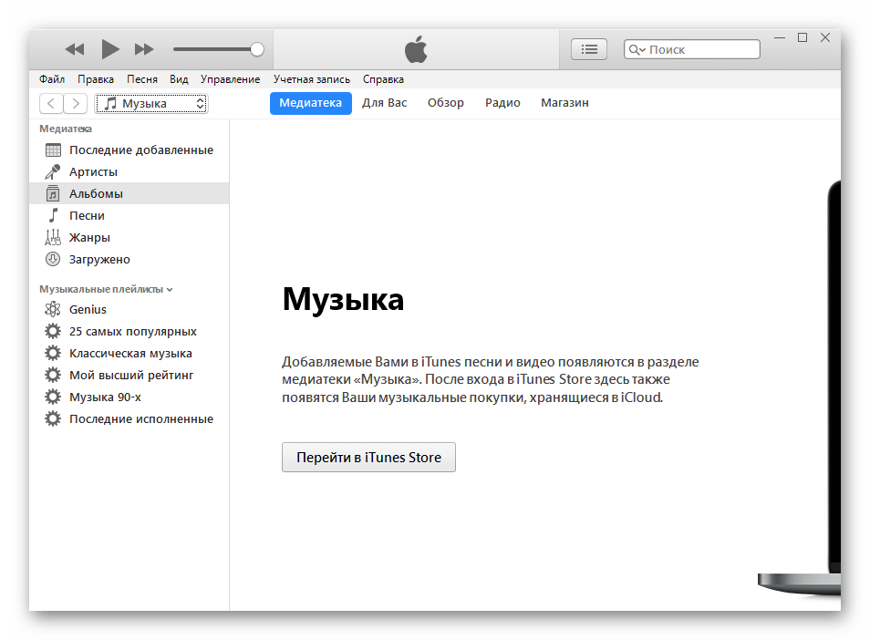 На компьютере Mac с macOS Mojave 10.14 или более старой версией macOS либо на компьютере с Windows подключенное устройство должно появиться в верхней части программы iTunes. Нажмите на него.