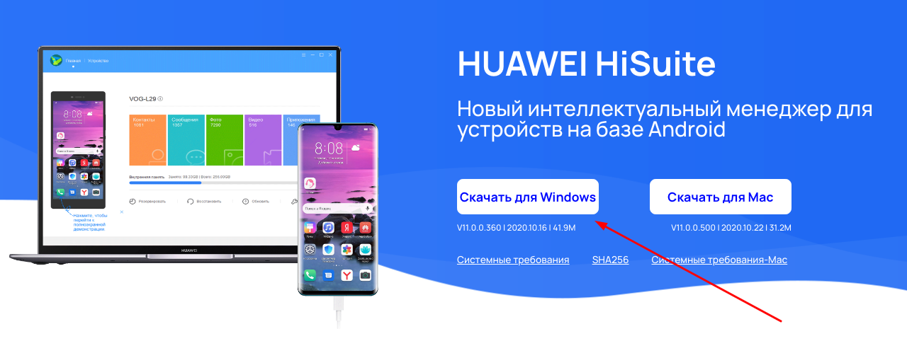 2. Скачайте и установите HiSuite — программное обеспечение от Huawei для подключения телефона к компьютеру и выполнения различных операций.