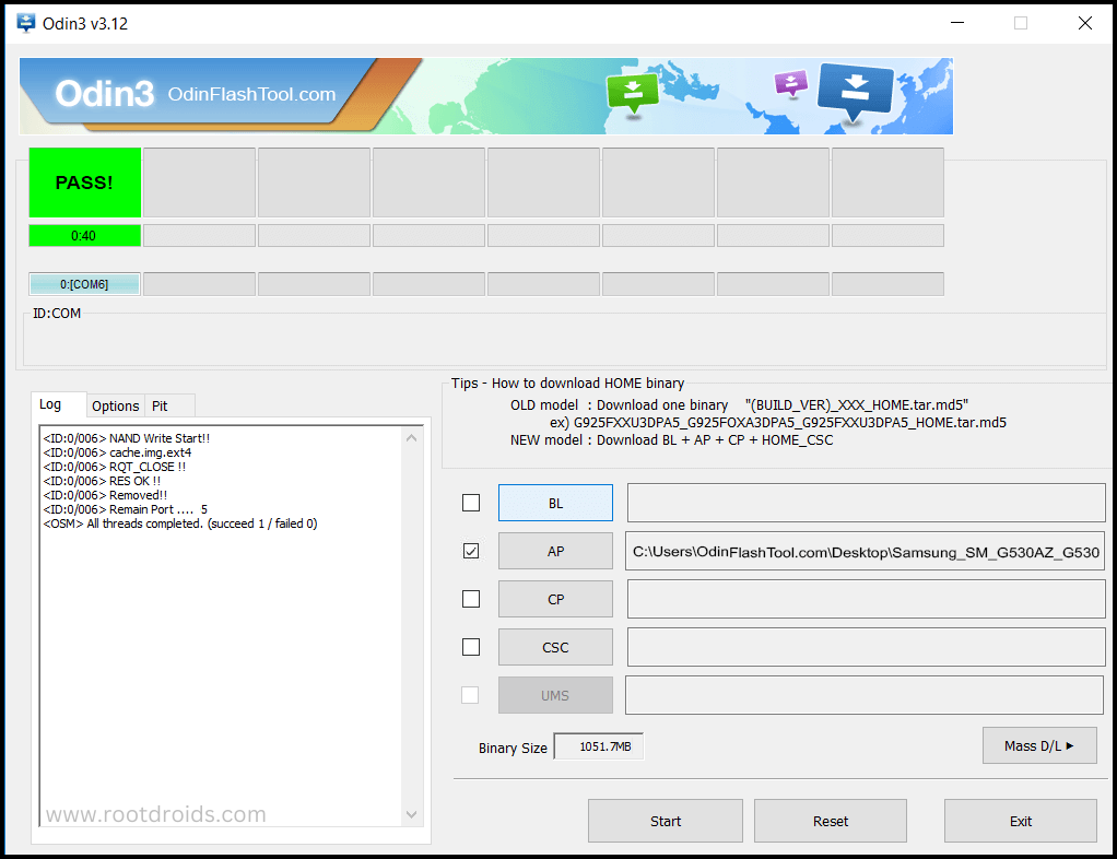 - Select the vbmeta.tar file and load it as AP in Odin and flash it. After it’s done, reboot your phone to download mode.