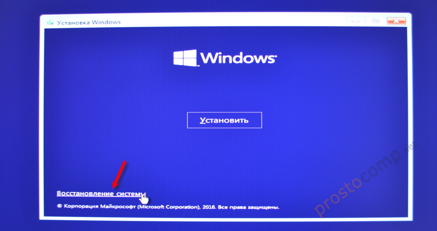 - После появления окна «Установить» нажмите «Восстановление системы». Так вы перейдете в среду восстановления.