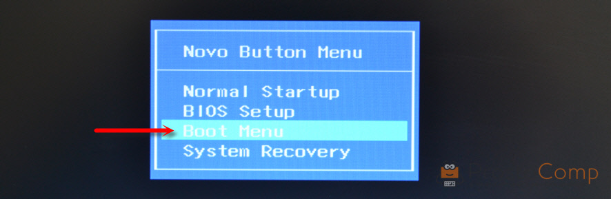 Ее нужно нажимать когда ноутбук выключен. Затем, в меню выбрать «Boot Menu». Так же оттуда можно зайти в BIOS.