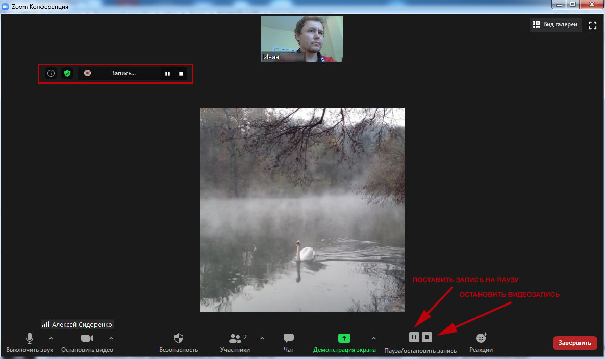 Видеозапись удаленного урока поможет лучше усвоить материал и выручит пользователей, которые опоздали или не смогли посетить собрание. Для записи конференции нажмите на иконку панели управления «Запись» в нижней части окна. При необходимости ставьте на паузу или останавливайте видеозапись. После завершения конференции приложение сохранит видео в формате .mp4 и аудио в форматах .m4a и .m3u в каталоге с текущей датой в папке Zoom.