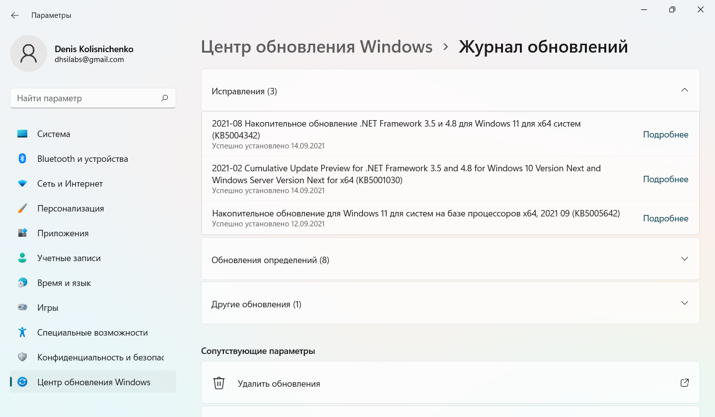 Здесь же можно вызвать журнал обновлений, позволяющий просмотреть, какие обновления были установлены до этого. Кнопка «Удалить обновления» позволяет удалить загруженные, но еще не установленные обновления.