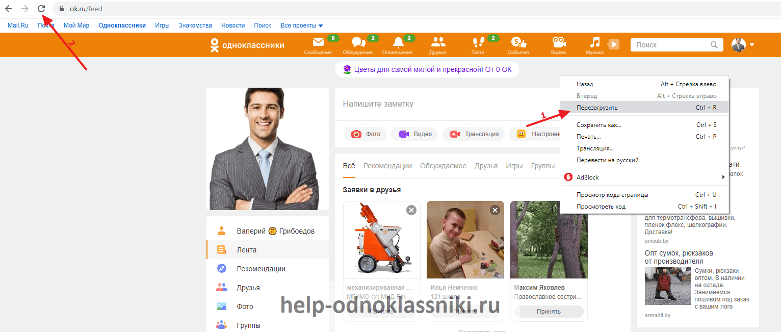 Как обновить страницу в «Одноклассниках» на компьютере?