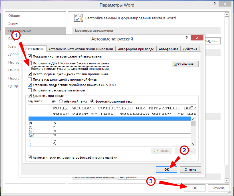 Как в Word отключить автоматический перевод строчных букв в заглавные