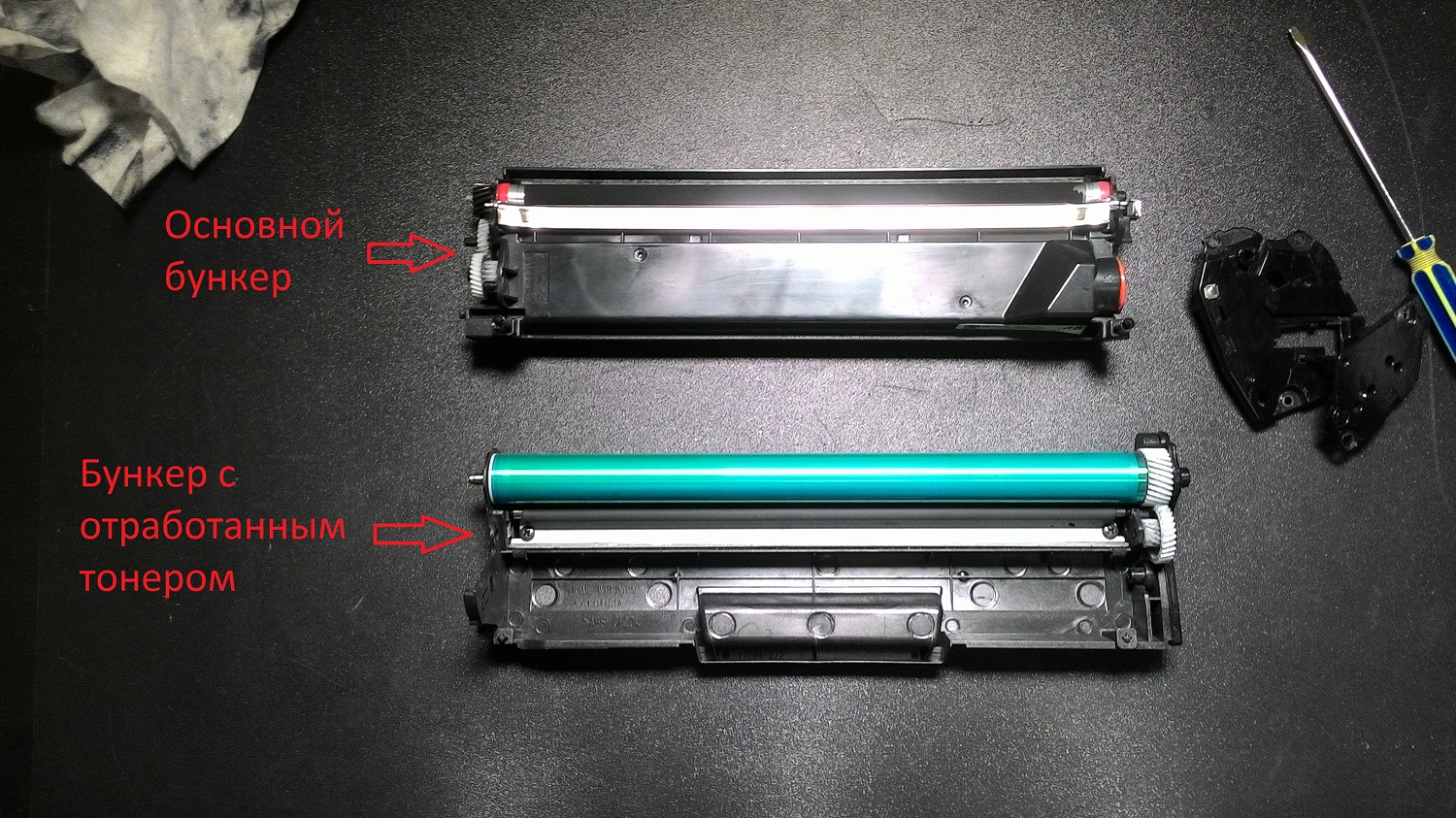 Безворсовые целлюлозные или тканевые салфетки для высушивания уже почищенного картриджа и промытых деталей принтера. Лучше использовать салфетки из ткани, так как они меньше подвержены разрушению из-за воздействия воды, а значит, лишнего ворса после промокания на деталях принтера не останется.