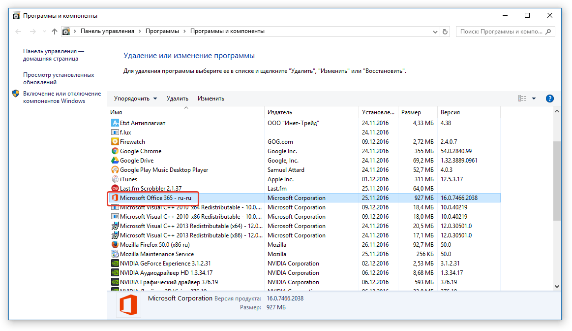 3. В открывшемся списке программ найдите Microsoft Office