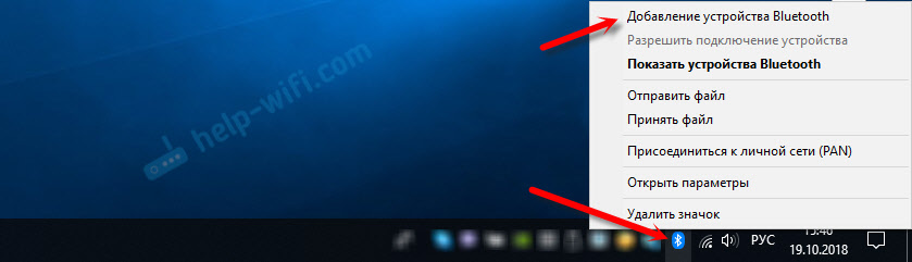 Можно нажать на соответствующую иконку в трее и выбрать «Добавление устройства Bluetooth», либо зайти в «Параметры» – «Устройства» – вкладка «Bluetooth и другие устройства».