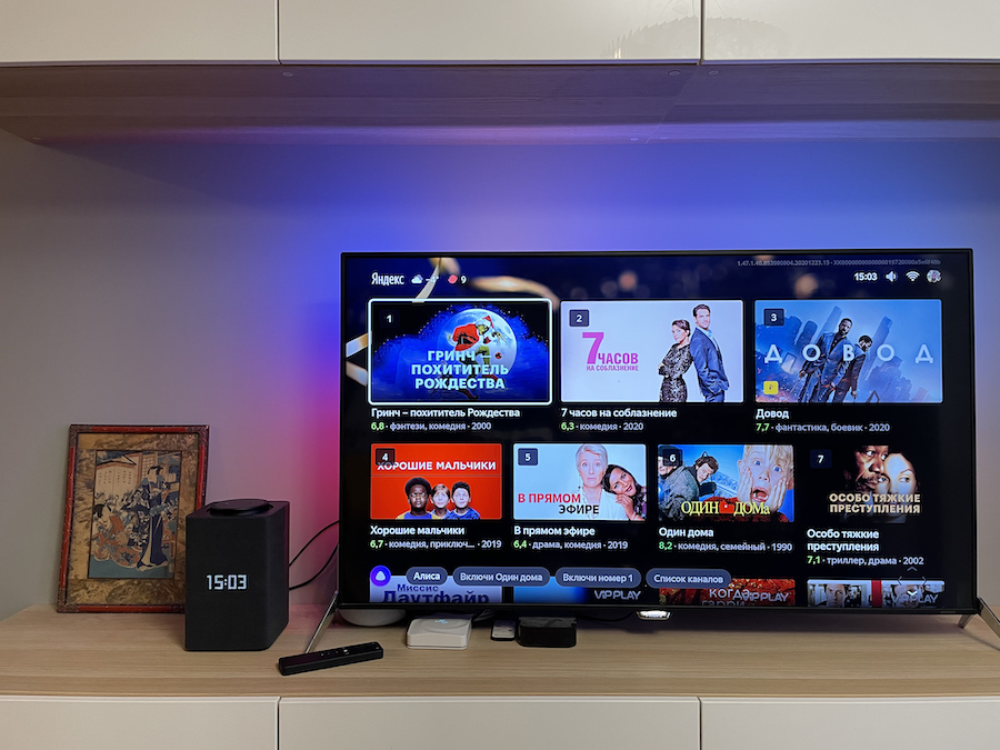 С помощью телевизора, подключенного к Яндекс.Станции, например LG, можно вводить следующие команды голосом.